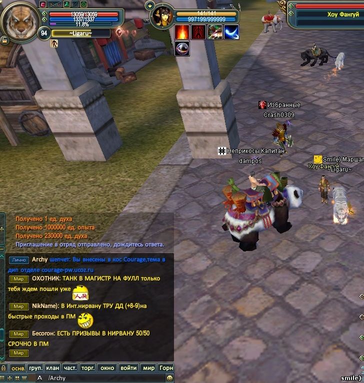 | Не известно каким языком написаны буквы ника, а то окажется, что мы сагримся на перса клана courage